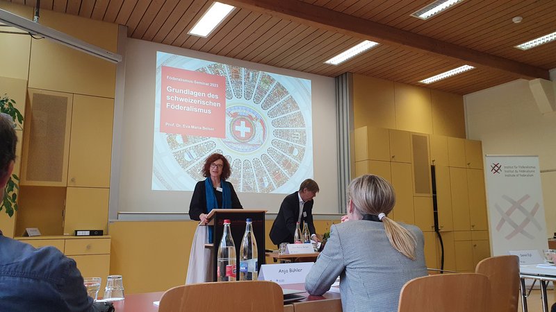 Eröffnet wurde das Seminar mit einem Überblick über die Grundlagen des Föderalismus und die entsprechenden Artikel der Bundesverfassung, in denen er Erwähnung findet. Anschliessend wurde das Thema unter verschiedenen Gesichtspunkten beleuchtet: der stets aktuellen Frage der Kompetenz- und Aufgabenteilung, der territorialen Herausforderungen (am Beispiel der Gründung des Kantons Jura oder dem letztjährigen Kantonswechsel der Gemeinde Clavaleyres von Bern nach Freiburg), der Finanzen oder der horizontalen und vertikalen Zusammenarbeit.
