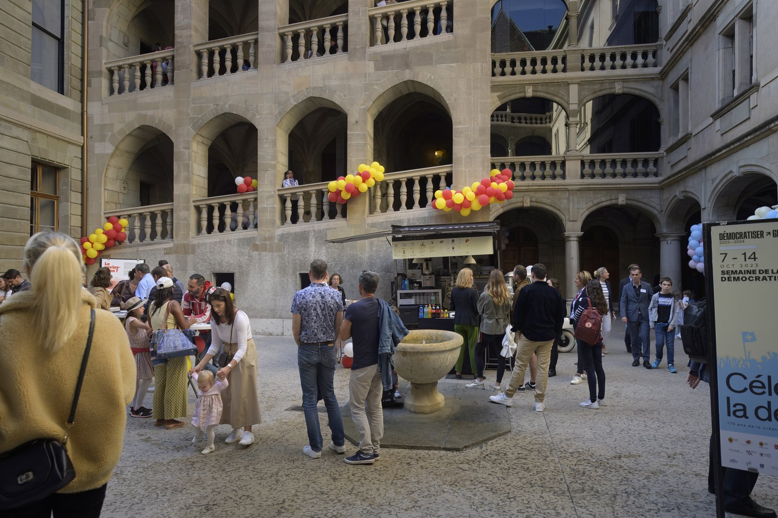 Die lehrreiche, spielerische und ansprechend gestaltete Ausstellung «Genève, lieu de démocratie» gibt einen Überblick über die demokratischen Institutionen des Kantons. Jeweils im Monat vor Abstimmungen oder Wahlen wird die Ausstellung im Hof des Hôtel-de-Ville sowie an verschiedenen Orten mit Publikumskontakt wie der Herbstmesse gezeigt. Sie will verständlich machen, wie die Demokratie in Genf und in der Schweiz funktioniert.
