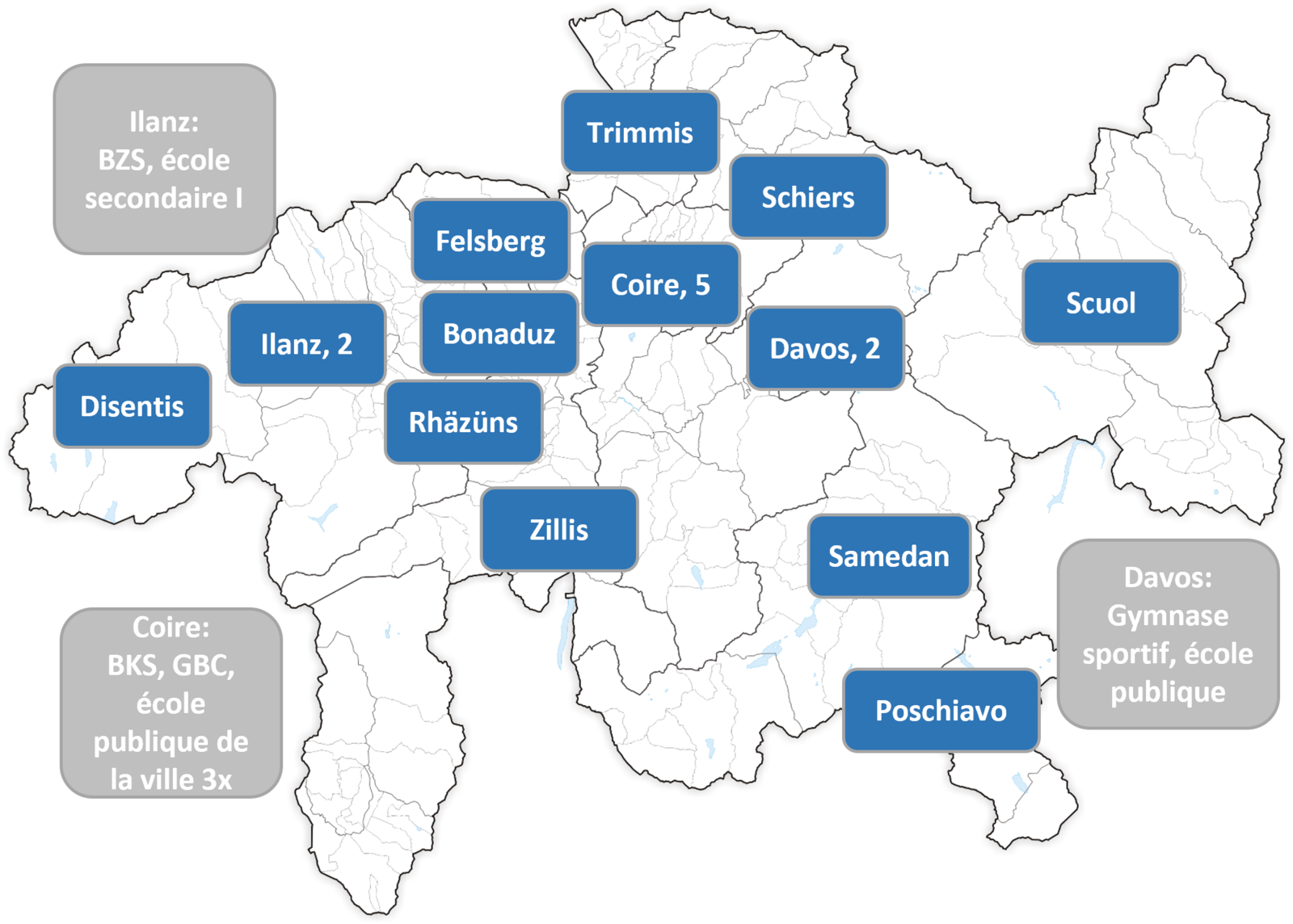 Ce projet était l’une des 17 mesures du programme « Politique de l’enfance et de la jeunesse » déployé par le canton des Grisons et fondé sur l’article 26 de la loi fédérale sur l’encouragement des activités extrascolaires des enfants et des jeunes (LEEJ). Déployées entre 2020 et 2023, les mesures visaient à atteindre les objectifs stratégiques d’encouragement, de protection et de participation. La diversité linguistique, géographique et culturelle des Grisons était au cœur de la mise en œuvre des différents éléments du programme, tandis que la planification et la réalisation des mesures s’inscrivaient dans une approche de collaboration interdisciplinaire.