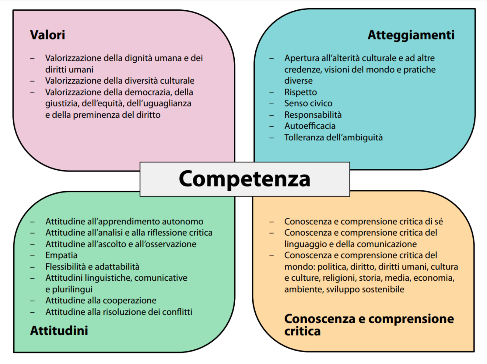 8 Consiglio d’Europa (2016): Competenze per una cultura della democrazia. Vivere insieme in condizioni di parità in società democratiche e culturalmente diverse (sintesi). URL: https://rm.coe.int/16806ccf13 (consultato l’ultima volta il 14 febbraio 2024).
